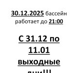 Уважамые посетители, с 02.11 по 04.11 включительно в бассейне выходные дни.