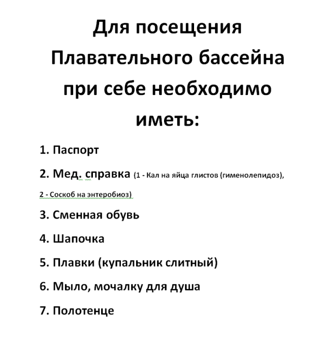 Для посещения бассейна необходимо иметь: